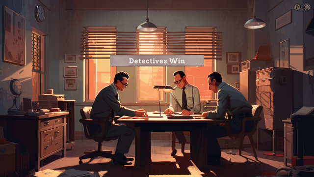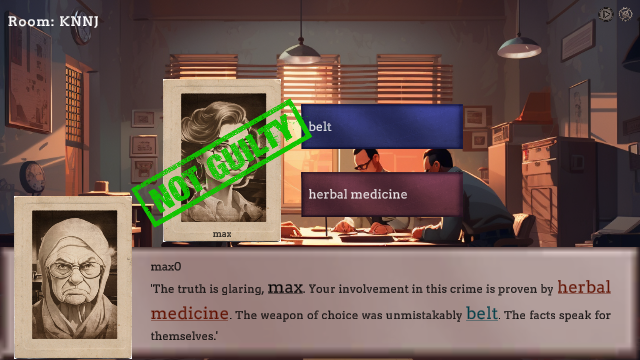 If the murder weapon and evidence was correctly selected, the player is guilty and the detectives win.